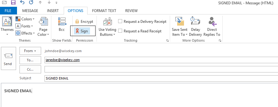 Now you should be able to compose a signed email, in the Options tab