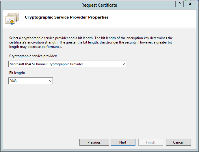 Cryptographic service provider - In the drop-down list, select Microsoft RSA SChannel..., unless you have a specific cryptographic provider.