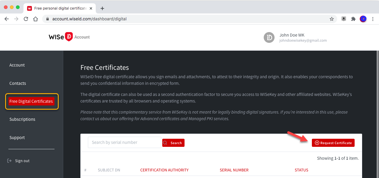 This document is an user guide on how to use WISeKey WISeID Account to sign up/sign in/verify email and obtain free digital identities.