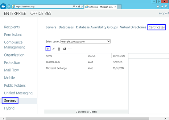 Click the link to Servers in the left column, then Certificates at the top right, then the + symbol.