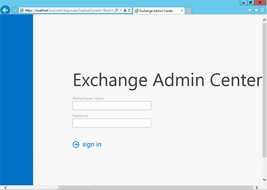 Access the Exchange Admin Center by opening a browser and browsing to https://localhost/ecp